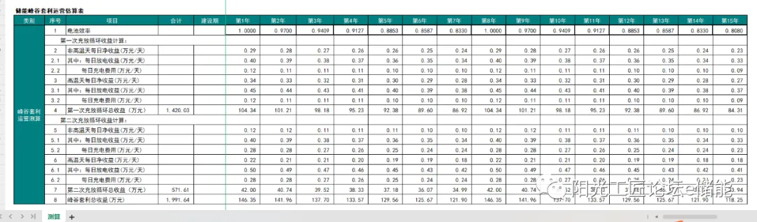 储能峰谷套利运营估算表