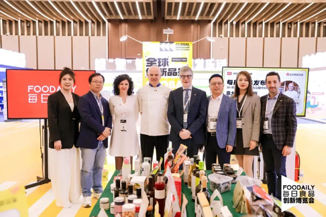 「全球创新品鉴」是Foodaily FBIC每年备受好评的核心创意策划板块,被无数品牌和产品决策人评为“灵感掘金地”。今年,Foodaily继续基于“全球视野,本土落地,创新解决”的理念,从28个国家和地区220,000多款年度上新产品中严选出3,000多款创新产品,现场划分为品类创新展组、趋势洞察展组、新XIU品牌展组、消费场景展组、热点主题展组五大块区块,结合Foodaily研究院独家创新亮点解读,帮助大家渐进式汲取创新灵感。在全球创新品鉴展组现场,我们与小红书共同沉浸式还原年度十大消费场景,深度拆解和洞察场景消费需求,并带来300+全球创新产品案例与本土创新品牌案例,为品牌产品创新、营销提供思路,帮助品牌发现趋势场景下的品类机会和场景营销思路指引。同时这里吸引了一众参会观众及KOL现场拍照打卡。值得一提的是,今年的全球创新品鉴迎来了意大利国宝级星厨及意大利使馆代表,带着30+意大利美食现场发布与品鉴。