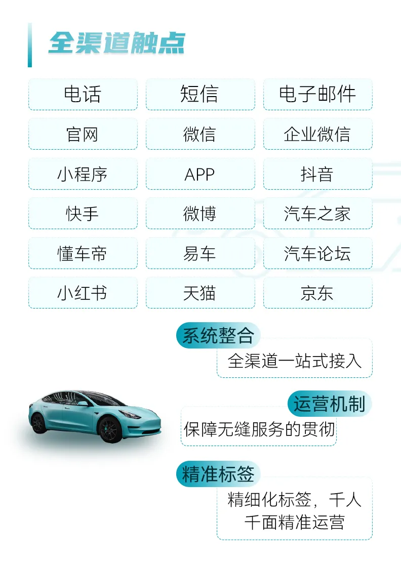 作为传统汽车企业所推出的智能纯电汽车品牌,客户品牌从诞生起就被赋予了智能属性。从汽车外观、功能设计和品牌概念上无一处不体现智能元素,而作为影响品牌忠诚度和美誉度的关键阵地——客户服务,也尤为注重通过创新技术不断地提升客户体验和服务效率。与此同时,在快速发展的新能源汽车市场,一个新兴品牌的成长空间蔚为巨大,如何确保服务端能够弹性匹配业务需求、提供稳定高效的服务品质呢?这对智能客服系统的规模化处理能力、弹性扩容能力以及产品售后服务能力都提出了考验。经过前期的深入沟通和需求挖掘,维音产品服务团队基于自身在新能源汽车领域深厚的数字化服务经验,为客户提供了如下解决方案。随着新能源汽车市场走向成熟,基于价格、SUV/轿车、纯电/混电的需求筛选,用户逐渐走向圈层化,消费升级需求驱动着各品牌进行差异化竞争。为了有效触达理想的客户群体,各大品牌通过营销活动和主动服务吸引来自不同线上渠道的购车客户。为了给品牌用户提供一致的优质服务体验,在合作加深的历程中,维音产品服务团队陆续为客户企业接入电话、官网在线、微信/企微、小程序、小红书、抖音等丰富渠道,这些既要求原有客服系统具备对接多渠道咨询窗口的能力,也需要团队及时高效地响应需求,才能在业务快速发展的过程中,稳定承载不同营销活动中的热流量,为来自不同平台的用户提供个性化的智能服务体验。