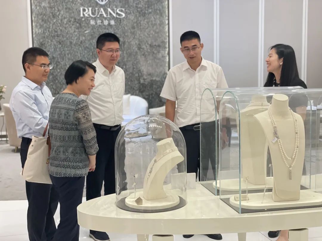5月14日下午,三亚市人民政府副秘书长王锋等领导在绍兴市商务局副局长邹丰的陪同下到珍珠小镇考察珍珠产业直播电商融合情况及电商纳统,诸暨市商务局党委书记姚勇琪、副局长丁国伟等相关领导陪同调研,华东国际珠宝城副总裁鲁丹萍陪同接待并参与座谈。