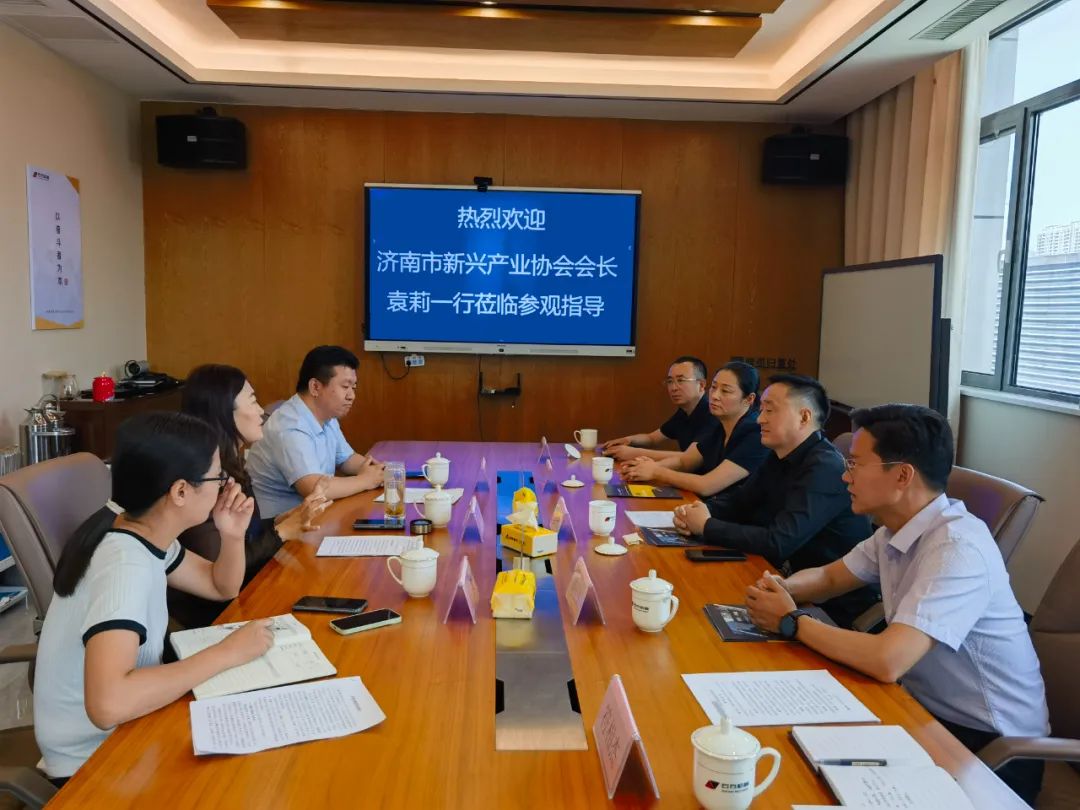 紧接着,袁莉会长介绍了济南市新兴产业协会的发展,并分享了协会的近况与愿景,激发了与会者的强烈共鸣。在接下来的互动环节,双方围绕时下行业动态、合作项目潜力及信息交流机制等议题展开了深入探讨。讨论热烈而富有成效,不仅加深了彼此的认知,更觅得了合作的宝贵契机,双方一致憧憬未来能在资源共享、项目协同、情报互换等方面构建更加立体、宽泛的合作框架,携手促进会员企业的茁壮成长,共筑济南乃至山东产业升级与经济发展的新高度。