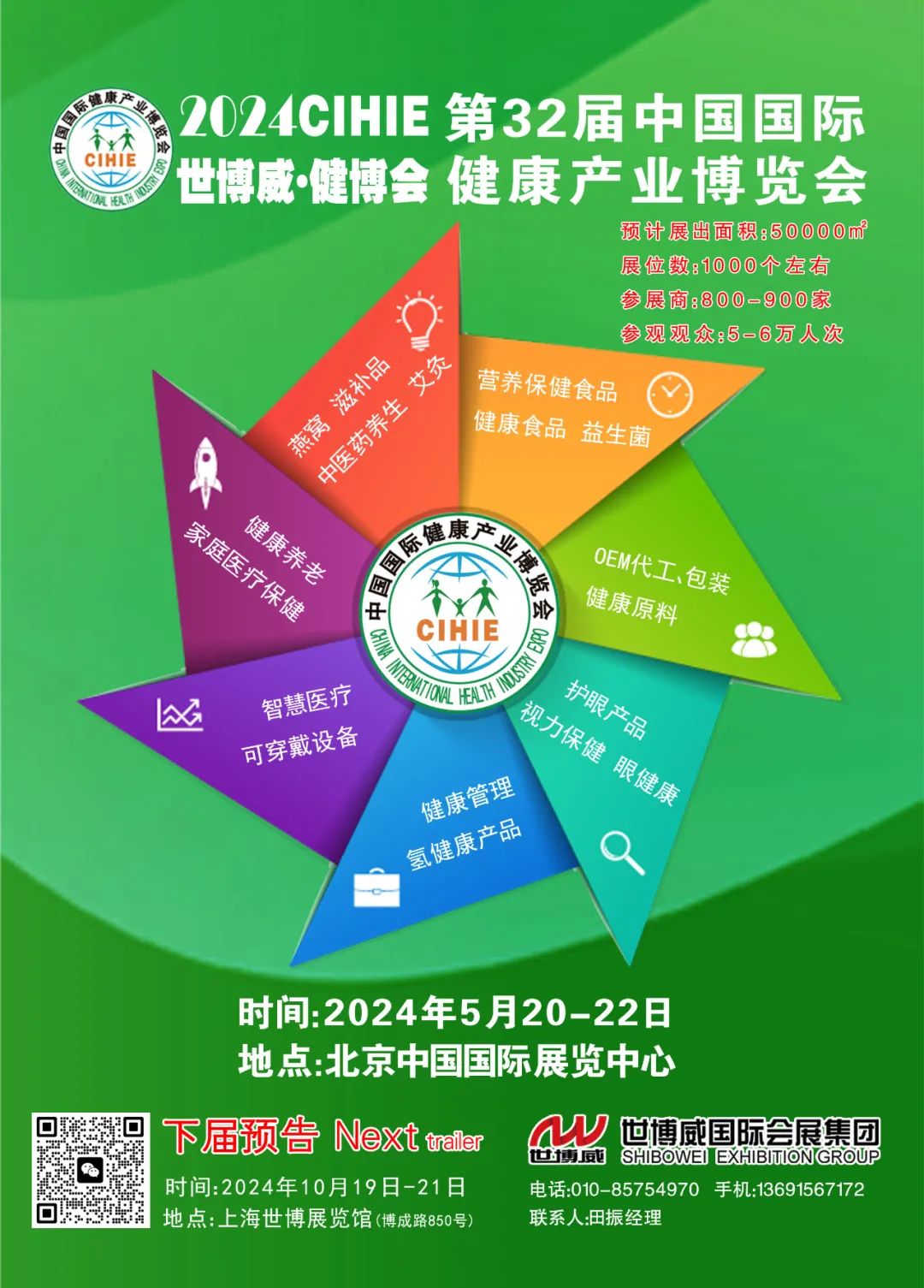 向新出发,共创行业新未来!2024年5月20—22日,第32届中国国际健康产业博览会将在北京·中国国际展览中心(朝阳馆)盛大召开,围绕“创新、融合、可持续”主题,通过模式创新、服务创新、内容创新、展现形式创新、推广宣传创新等多个维度,全方位升级展会,精心打造9大主题展区,品牌展商将携10000+甄选健康好物,全面展示大健康全领域的新产品、新技术、新应用、新模式、新业态。