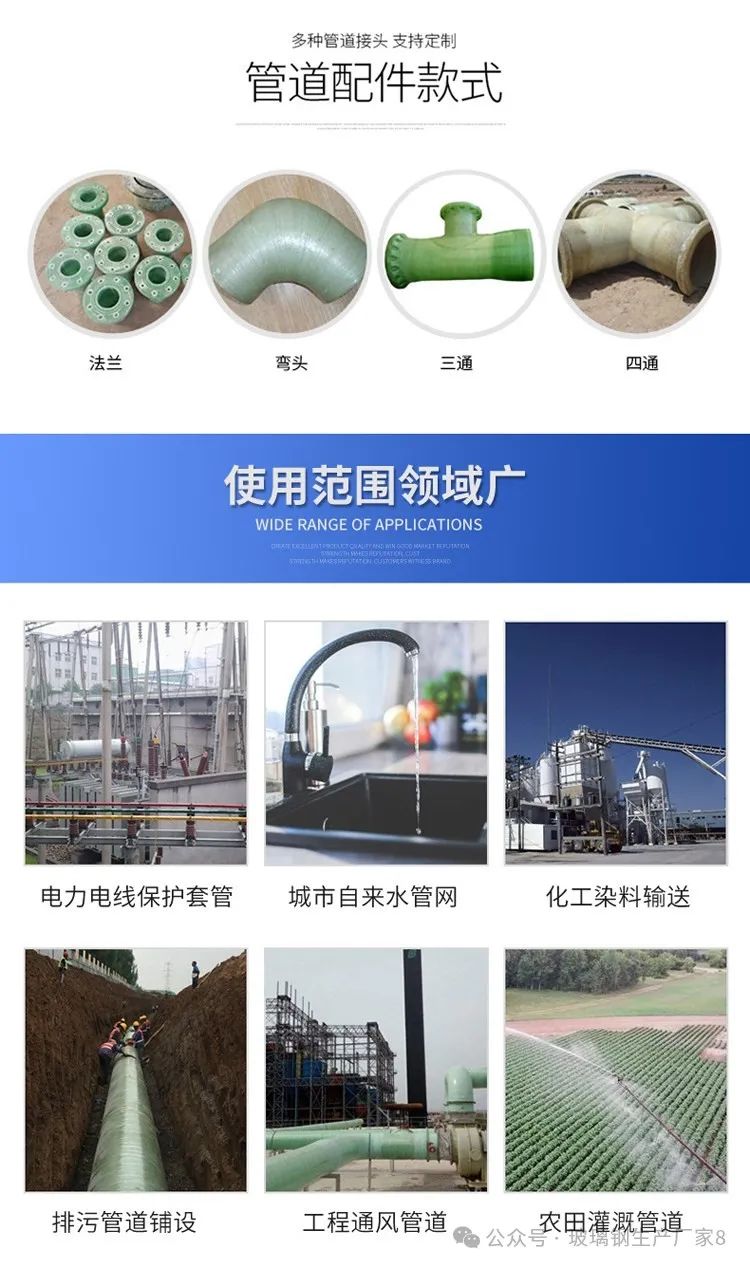 玻璃钢管胶接连接的优、缺点玻璃钢管胶接连接主要有以下几方面的优点:(1)被连接的玻璃钢管,因为没有在管体上开槽、开孔而切断纤维,故不会产生由此引起的应力集中,降低管的承载力,并保存了管体良好的防渗能力;(2) 在一般条件下,被连接的玻璃钢管因不需要金属紧固件,故减少了机械加工的工作量与材料的消耗,接头轻,费用低;(3) 由于在两根管的接头处进行了去油污、除杂质处理,并对机加部位或裸露纤维的地方涂敷了与内衬层相同的材料,使这个区域的耐腐蚀性能与管体相同;(4) 由于各种胶接连接均用毡、带包缠接头部位的外管体,使接头具有一定的树脂层故密封性好;(5) 永久变形小;(6) 零件数量少,便于安装。
