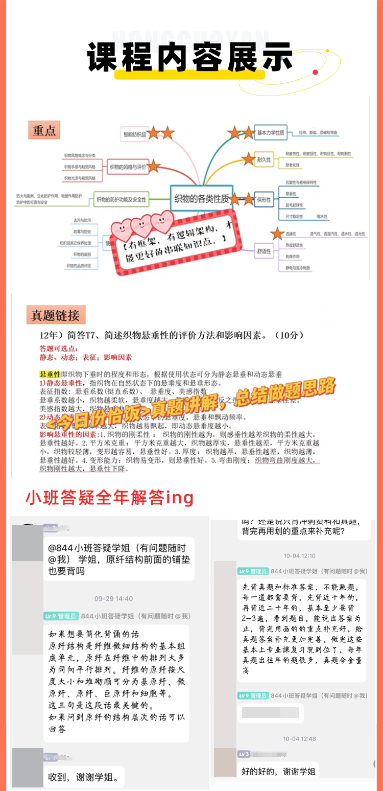 那么来加入844纺织材料学全程提分小班吧,给你考研路上无忧的陪伴和明确的方向!