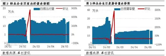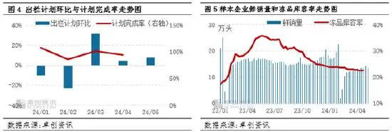 从需求看,经过前期持续亏损,屠宰企业冻品入库意愿较低,卓创资讯监测2024年样本企业冻品库容率缓慢下滑,截至5月9日,样本企业冻品库容率为22.57%。同时,2024年终端需求同比表现疲软,猪肉需求疲软导致猪肉价格难涨,叠加屠宰企业冻品入库意愿不足,二者共同导致屠宰企业高价收猪意愿较低,利空下旬猪价。