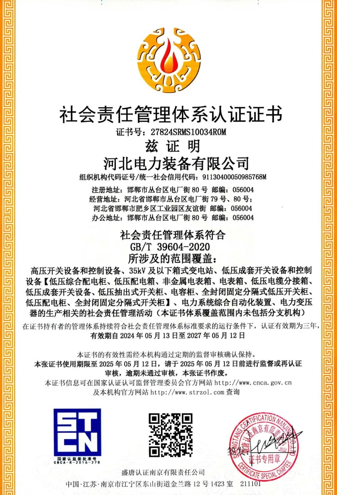 日前,河北装备公司顺利通过了“社会责任管理体系”的首次认证审核,获得了“社会责任管理体系认证证书”,这标志着公司在履行社会责任方面取得了显著成效。