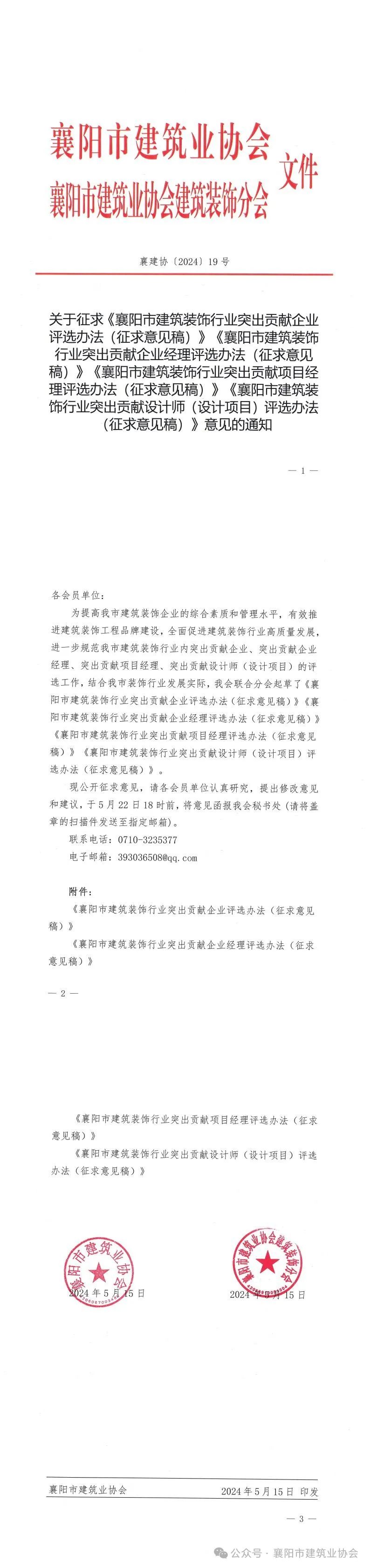 关于征求襄阳市建筑装饰行业突出贡献企业、企业经理、项目经理、设计师(设计项目)评选办法意见的通知