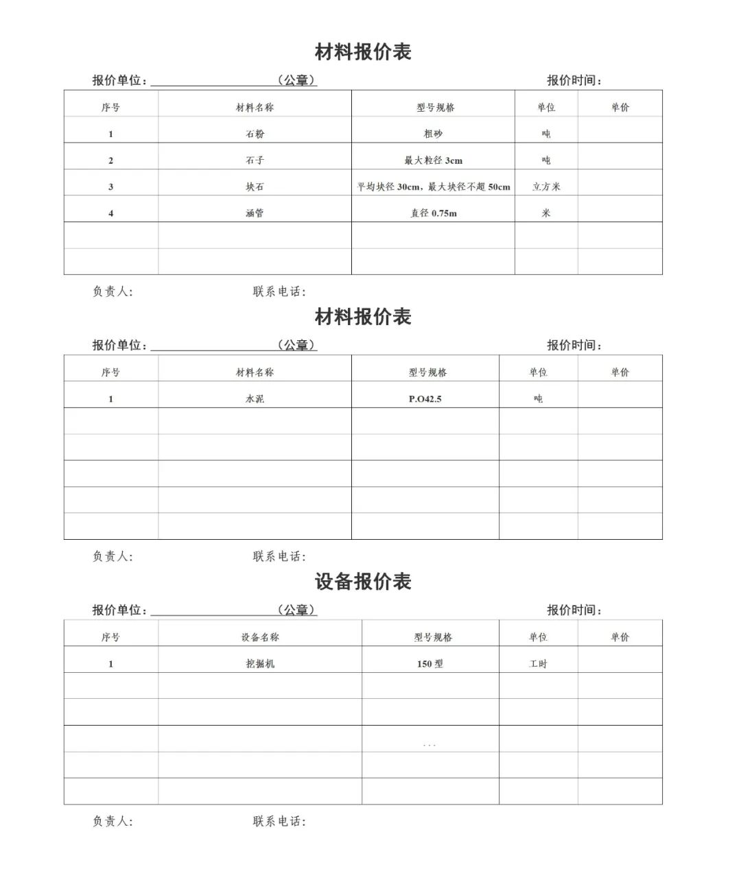 4. 石料材料供应商报价需涵盖石粉、石子、块石、涵管,不能缺项,缺项视为无效报价。