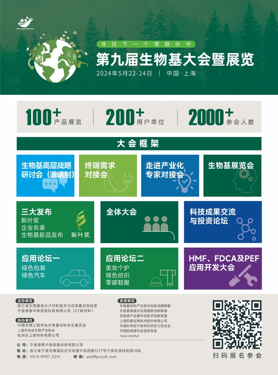 第九届生物基大会(简称Bio-based 2024,5月22-24日,上海)以“寻找下一个零碳伙伴”为主题,聚焦全球范围内的生物基企业解决方案和产学研最新科技成果,探讨如何把握双碳时代,实现生物基材料的大规模商业化应用。安踏、大众汽车、欧莱雅、固特异轮胎、一汽、喜临门、美的、伊利、吉利、李宁等多家终端品牌已经参与,100+展商、110+嘉宾、500+企业,2000+行业代表等您来。
