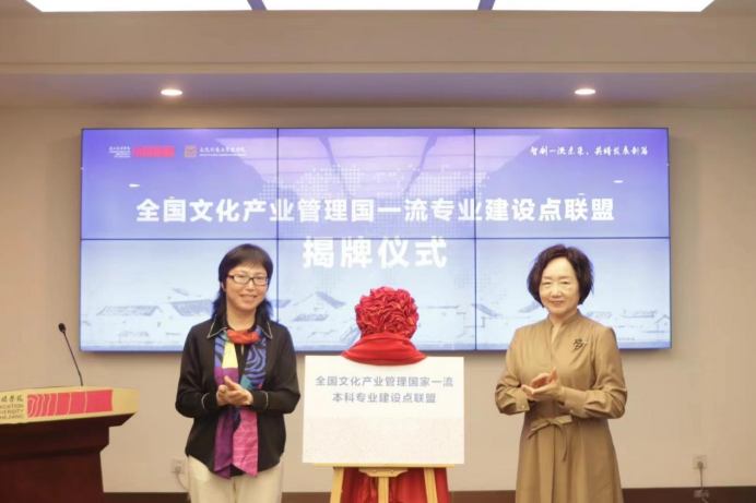 教育部工商管理类专业教学指导委员会副主任委员蔡莉与浙江传媒学院党委委员、副校长李文冰共同为“全国文化产业管理国家一流本科专业建设点联盟”的成立揭牌。该联盟旨在为高校搭建开放、共享、互鉴的交流平台,推动整合全国文化产业管理专业国家本科一流专业优质教育资源,全面提高文化产业管理专业的建设质量和文化产业管理人才培养水平。