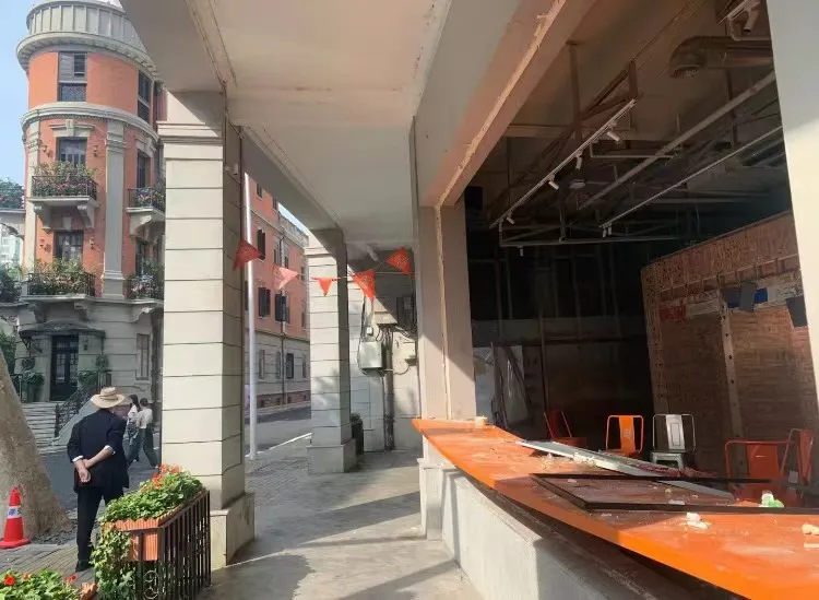 不仅如此,这里还在撤场,门店外面的装潢已经被拆掉,店内不少东西被搬走,仅剩一些展台、货架等大物件类,看起来一片狼藉。