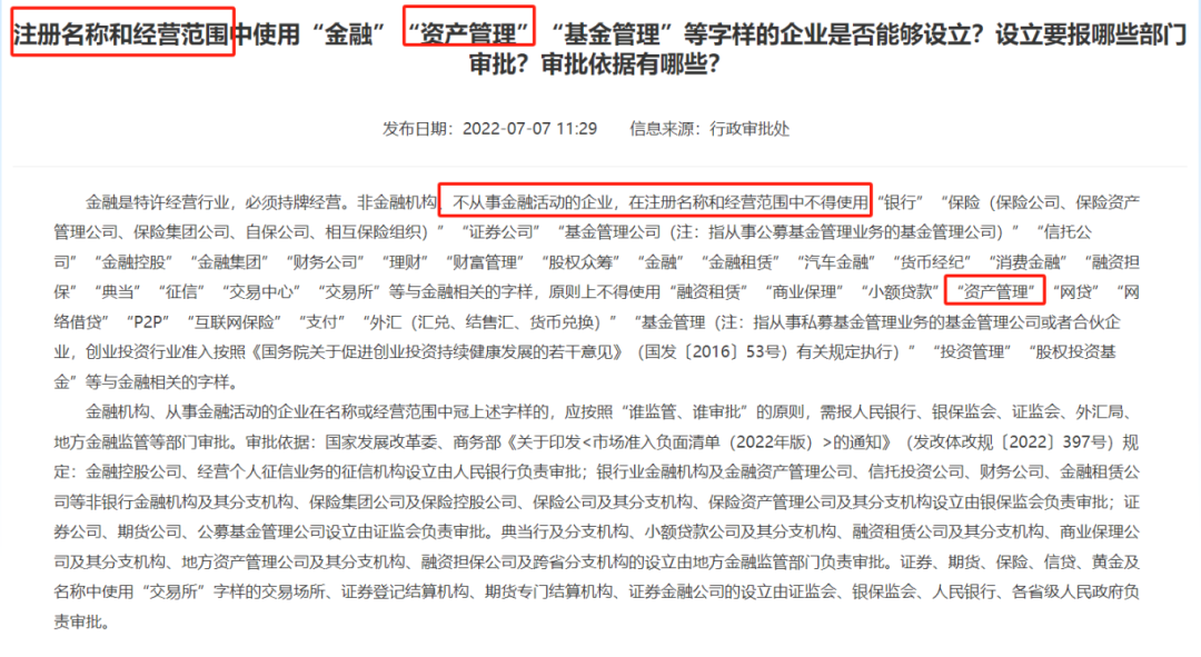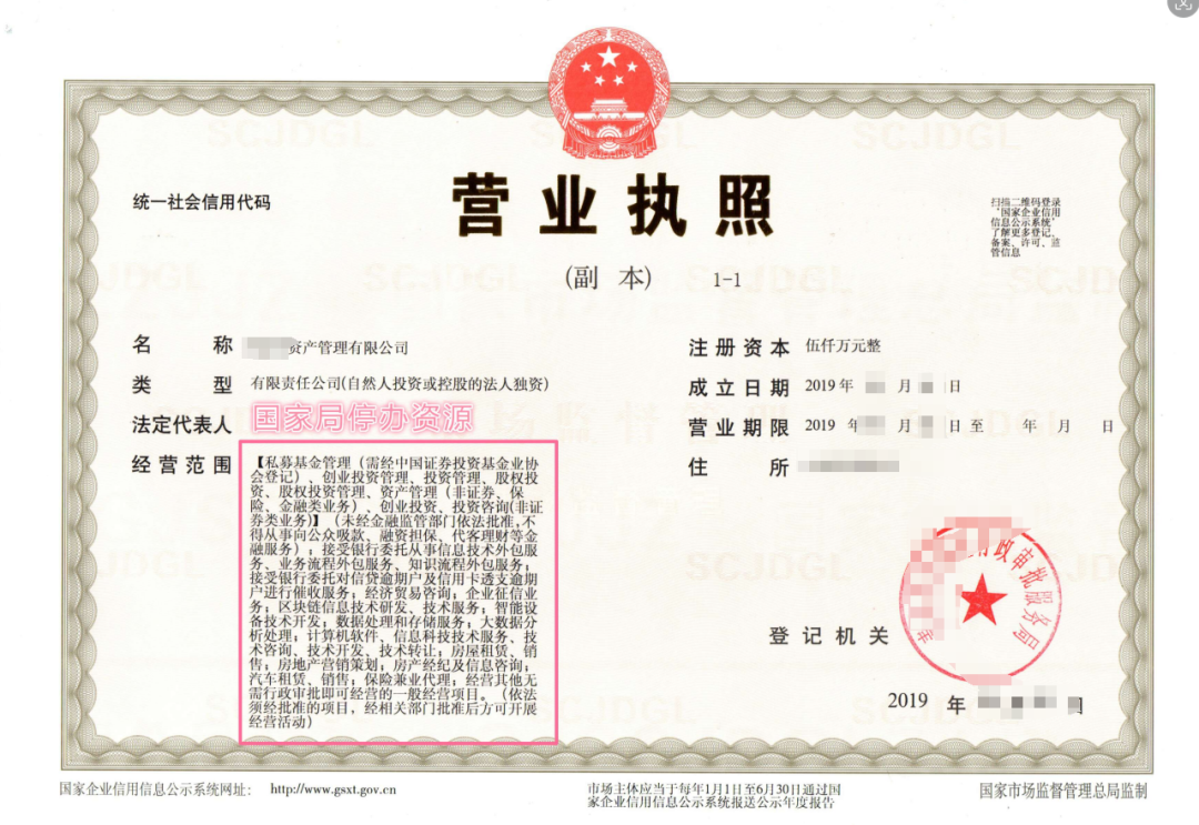 备注:注册申请公司名称和经营范围中含有“资产管理”相关字样的,每个城市的审批政策不同,有需要了解的,可以咨询。