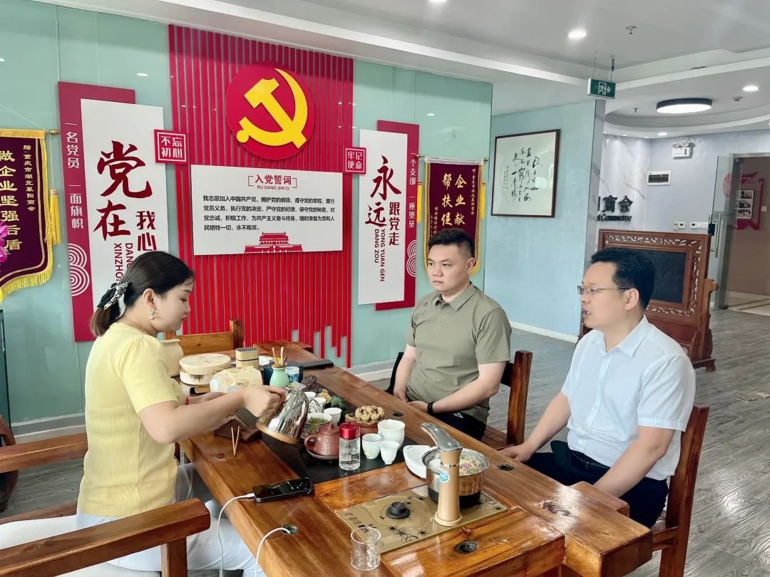 随后,大家就当前经济形势与企业相关业务进行了沟通交流;秘书长朱琳表示,后续将邀请会领导一起,到廖总公司考察学习,同时也诚挚的邀请廖总加入重庆市湖北襄阳商会这个大家庭,大家共叙乡情,共谋发展。