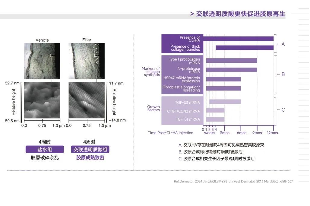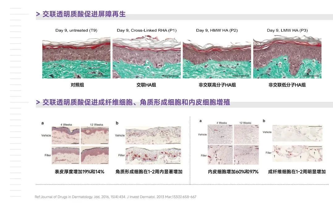 ▷国内外丰富的循证医学显示,交联透明质酸在皮肤再生美学领域的应用拥有尚未挖掘的新潜力,非交联透明质酸和交联透明质酸的黄金配比,赋予了产品同时拥有无炎再生和抗炎修复的能力。
