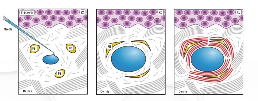 ▷宝宝针在注射入真皮后,能立即挤压拉伸成纤维细胞重新合成细胞外基质(ECM),因不经历炎症过程胶原新生更快(最晚30天即可形成成熟胶原蛋白纤维束,而再生材料至少需要90天);宝宝针交联度极低(<1%),注射后不起皮丘,应用更放心,相比非交联透明质酸能长久维持真皮结构及细胞外基质容量,从而展现更持久面部年轻化效果;内含利多卡因,有效降低生理和心理痛感,让求美者舒适变美。