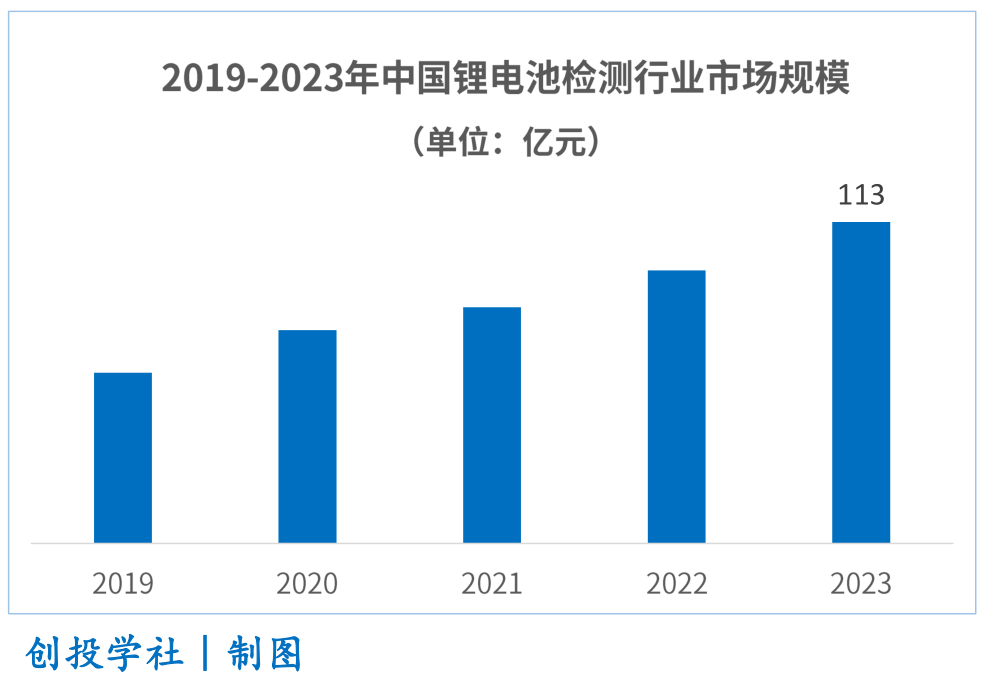 近年来,受到政策支持和市场需求的双重推动,我国锂电池产业快速发展,市场需求不断增长,这也为锂电池检测系统行业提供了广阔的市场空间。据统计,2023年中国锂电池检测系统市场规模约为113亿元。