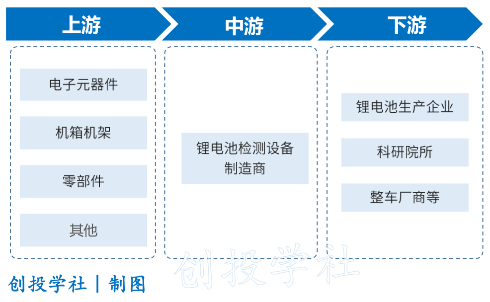 上游供应环节:包括电子元器件、机箱机架等供应商,为锂电池检测系统的制造提供必要的原材料和零部件支持。中游制造环节:主要是锂电池检测设备制造商,根据不同类型的电池产品需求,提供相应的检测设备以确保产品的安全可靠性和研发目的。下游应用环节:涉及锂电池生产企业、科研院所、整车厂商等,为锂电池检测系统的应用提供市场需求。