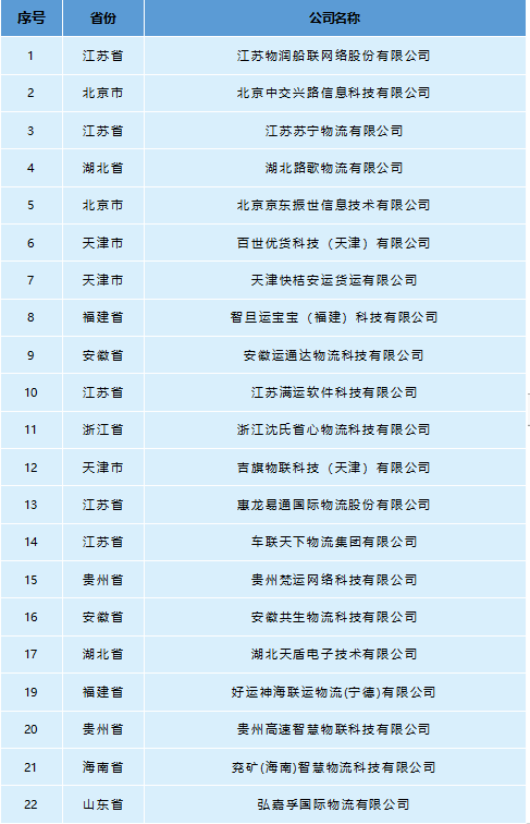 以下为部分省份公示了网络平台线上服务能力认定合格企业名单,和取得网络货运道路运输经营许可企业名单(排名不分先后)。