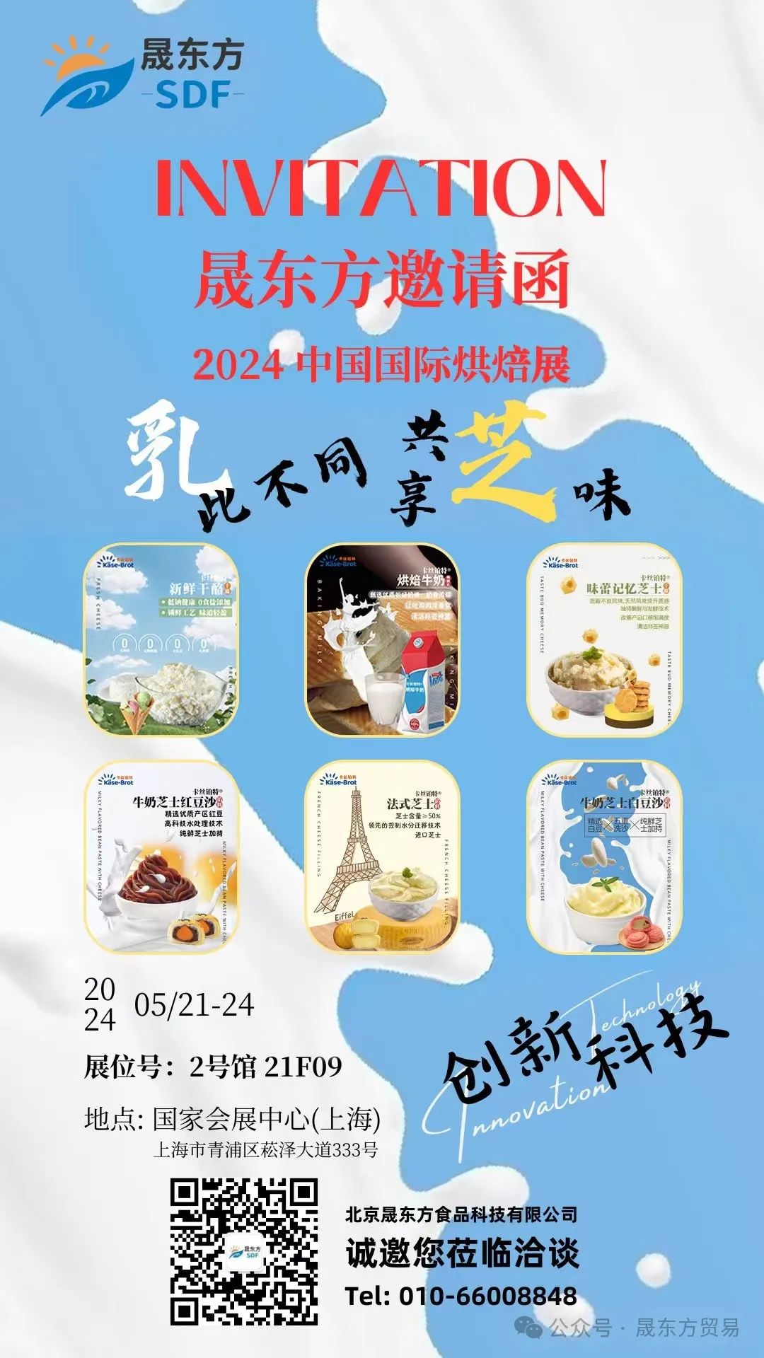 2024年5月21日-24日,晟东方在中国国际烘焙展2展馆,21F09展位期待您的莅临指导,与您共创行业辉煌!