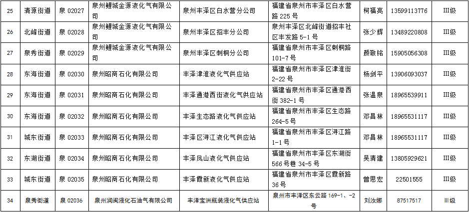 回家快自查!丰泽区瓶装燃气供应站点花名册公布……