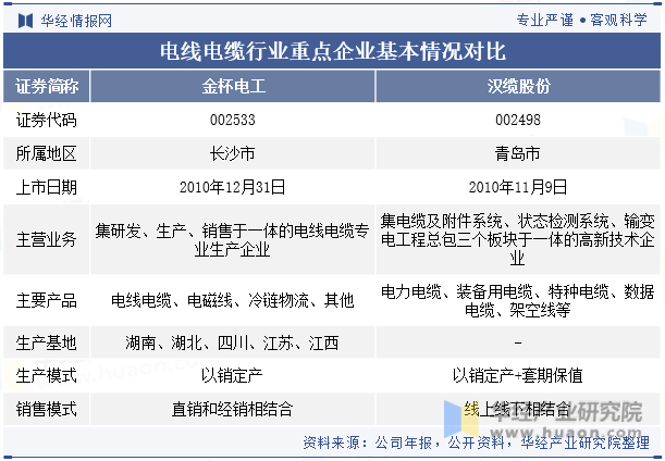 行业重点企业基本情况对比