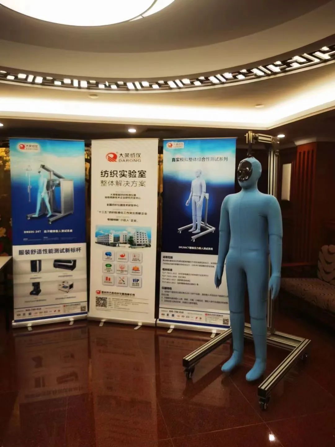 大荣纺仪受邀参加此次会议,并展示了真实模拟、整体综合性能检测模拟假人系列产品。