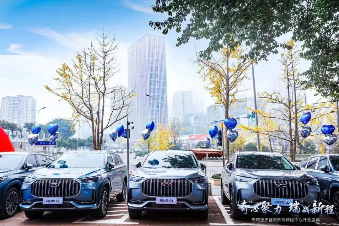2023年12月,奇瑞重庆盛联辉瑞体验中心正式开业,这是奇瑞4.0标准下重庆首家开业的旗舰店,图为奇瑞汽车亮相开业盛典。盛联辉瑞供图