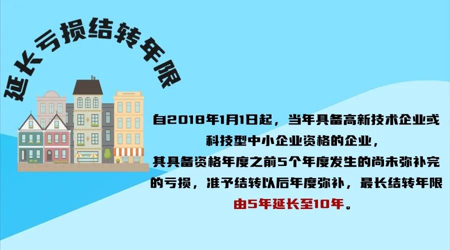 自2018年1月1日起,当年具备高新技术企业或科技型中小企业资格(以下统称资格)的企业,其具备资格年度之前5个年度发生的尚未弥补完的亏损,准予结转以后年度弥补,最长结转年限由5年延长至10年。