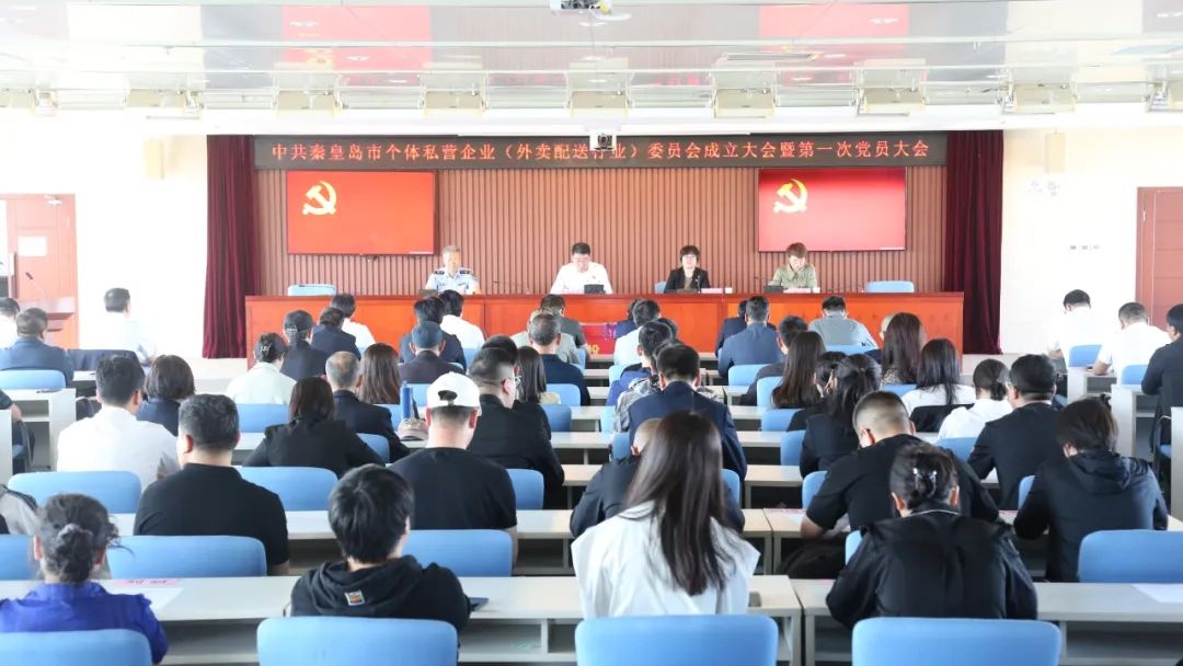 会议宣读了《关于成立中国共产党秦皇岛市个体私营企业(外卖配送行业)委员会的批复》,选举产生了第一届党委委员、党委书记,乔雪飞为委员会揭牌。