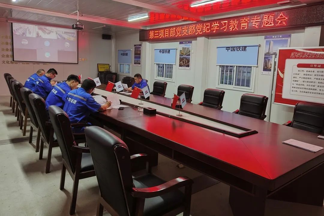 第八项目部党支部积极开展党纪学习主题党日活动,组织项目部全体党员干部一同学习集团公司、公司发布的各类党纪学习教育资料,并集中观看《中国共产党纪律处分条例》学习教育微视频。