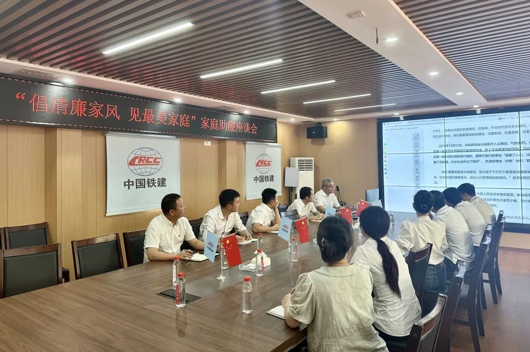 第二项目部党支部组织开展“倡清廉家风 见最美家庭”为主题的家庭助廉座谈会,教育引导党员干部、家属牢固树立“廉洁家则兴、贪腐必败家”意识,积极发挥家庭助廉作用,以良好家风涵养清风气正,为党员干部筑牢拒腐防腐和倡廉促廉的家庭防线。