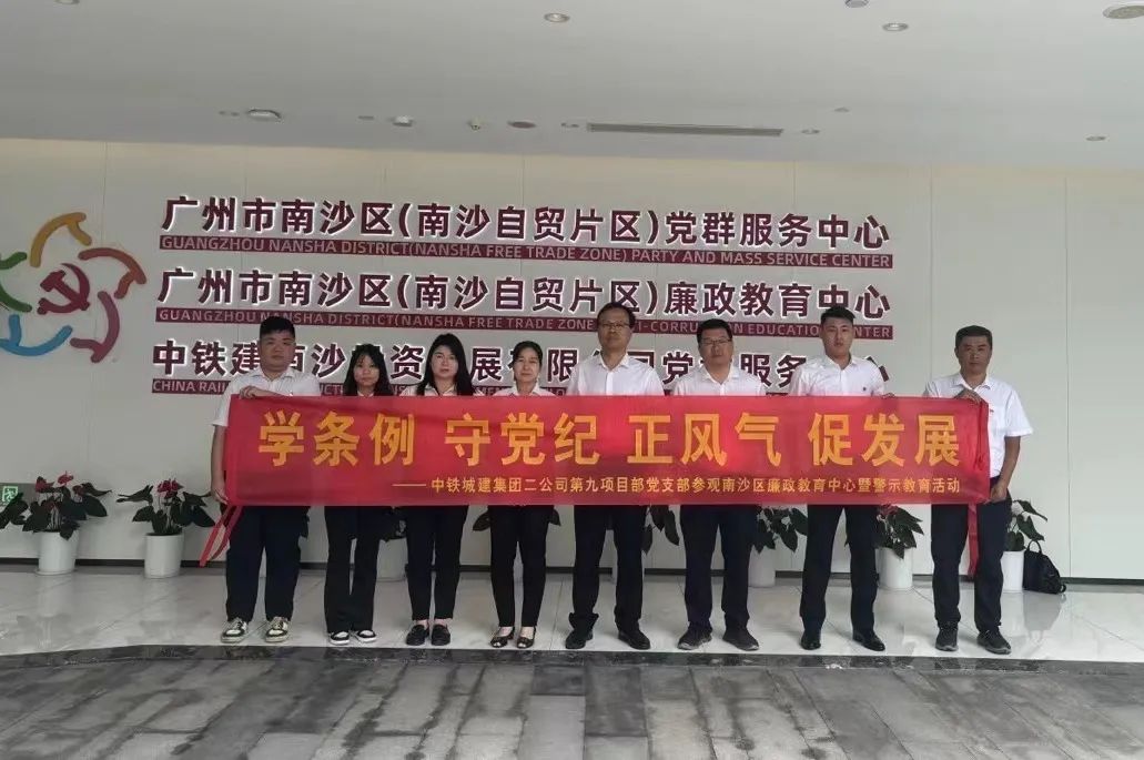 第九项目部党支部与业主单位中铁建南沙投资发展有限公司开展廉洁文化交流,前往南沙区廉政教育中心开展廉洁警示教育活动。全员跟随讲解员依次参观“南沙之窗”“党性教育”“政治体检”“以案为鉴”“凝视深渊”等展区,通过沉浸式球幕和碗幕、智能感应地砖、AR投影技术等高新科技,在生动有趣的观感体验中领略南沙历史变迁和发展未来,在触动灵魂的警示案例中完成了对党纪国法的再次学习和深化。