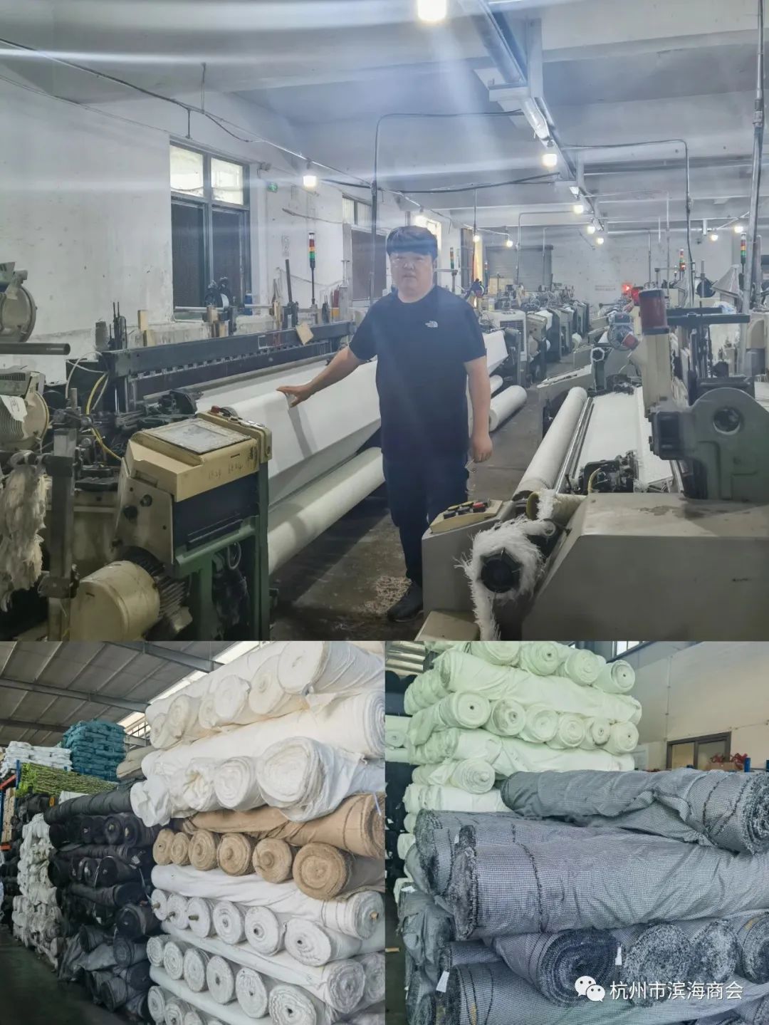 杭州丝顺纺织有限公司是一家纺织厂,为日常生活中的所需提供原料。刘总对调研组介绍说:我们对施工步骤的把控,每一关都认真严苛,经典即是将细节雕琢至完美,不朽即是让每寸空间不差毫厘,精工即是将每件事做到极致,不因材贵有寸伪,不为技繁省一工。调研组也对刘总表示了肯定。