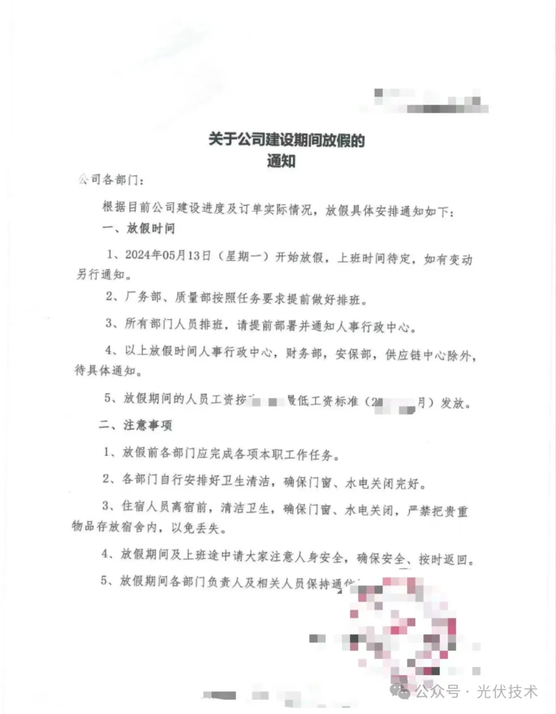 网传多家光伏厂商放假、降薪、薪资延期发放!