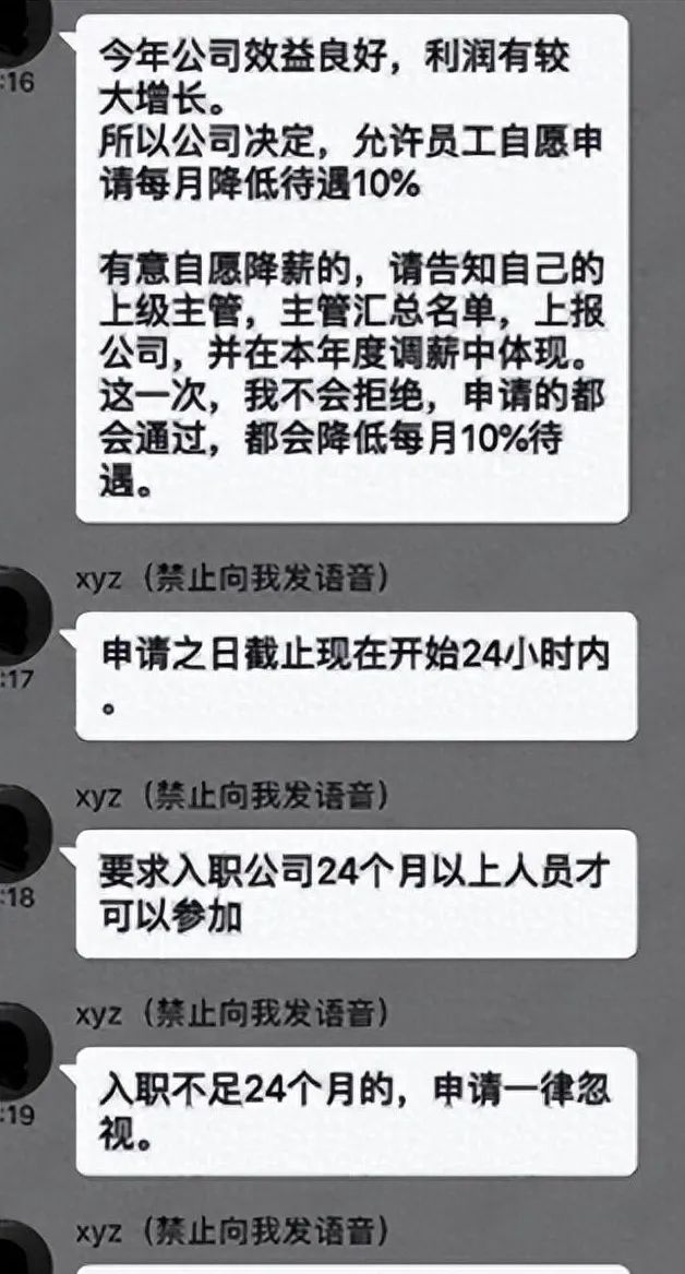 在这样的背景下,大部分员工最终选择签字同意降薪,比例高达93%。然而,也有一位员工对公司的做法感到不满,并且选择将内部情况公之于众。这一举动引发了社交媒体上的广泛讨论,人们开始质疑公司的降薪政策是否真的是自愿的,以及公司的做法是否合理,员工的权益是否得到了充分保障。这一事件也让公司内部的氛围变得紧张,许多员工开始担心自己的未来。