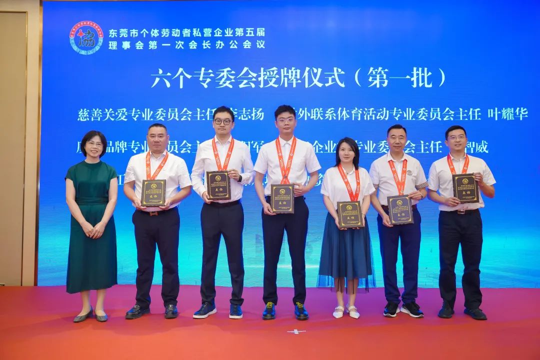 ▲市市场监管局党组成员、市个私企业党委专职副书记何丹莉为专委会主任及副主任颁发牌匾