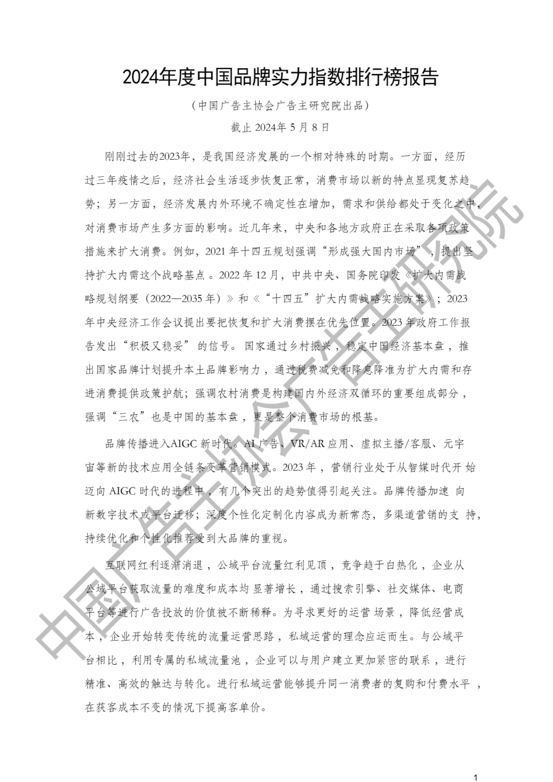 今天分享的内容是《探索中国品牌在全球竞争中的新地位与本土市场的发展机遇——2024年度中国品牌实力指数排行榜报告-中国广告主协会广告主研究院》