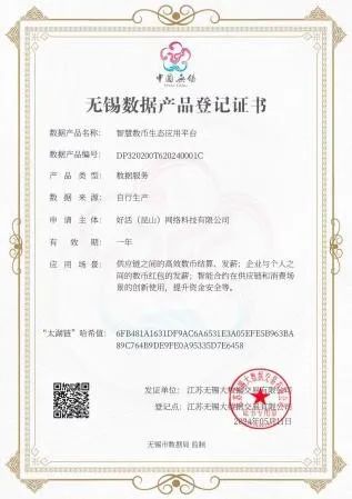 ▲江苏无锡大数据交易有限公司为好活科技数据授予产品登记证书