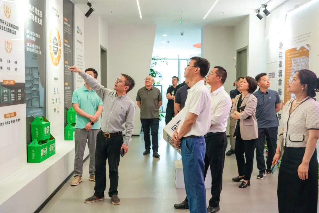 新农都控股集团一行由新农都控股集团党委委员、副总经理李慧、副总经理施林冲及其旗下天农公司执行董事孙春艳、水产公司董事长徐建江带队,前往一鸿市场集团总部进行参观及座谈交流。