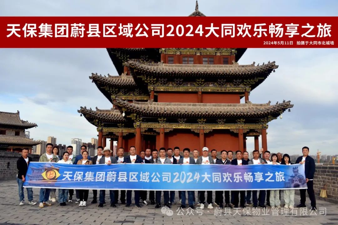 五月,在这个美好的季节,为丰富员工精神文化生活,增强团队凝聚力。在这个阳光明媚的日子里天保集团蔚县区域公司组织员工于5月11至12两天开启,“浓情五月 畅游古都”天保蔚县区域公司2024年主题团建活动,坐标千年古都大同,我们来了!