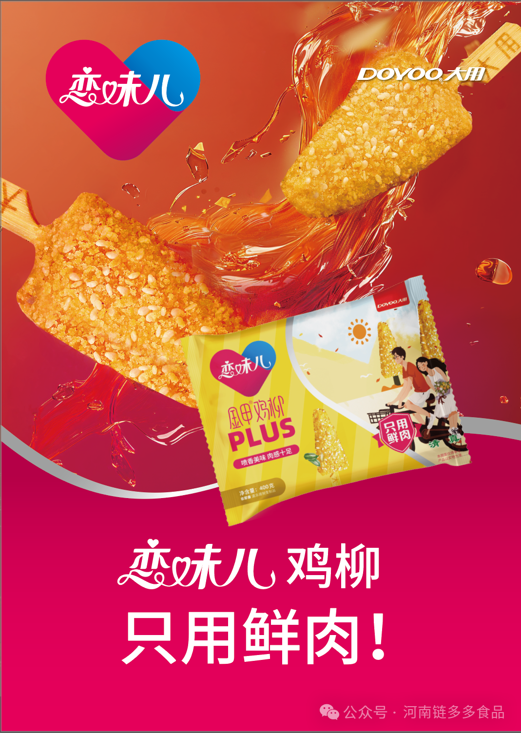 河南链多多供应链管理有限公司专注于速冻预制肉制品赛道,始终坚持需求引导型的产品开发理念,持续推动产品创新、渠道创新和供应链创新。针对日渐活跃的C端消费市场,2023年,链多多在原有“大用”“链多多”品牌基础上,推出更加年轻、更加时尚的“恋味儿”新品牌,形成新的品牌架构,通过“流通、商超、电商、连锁餐饮、便利、团购”等多种渠道服务客户。