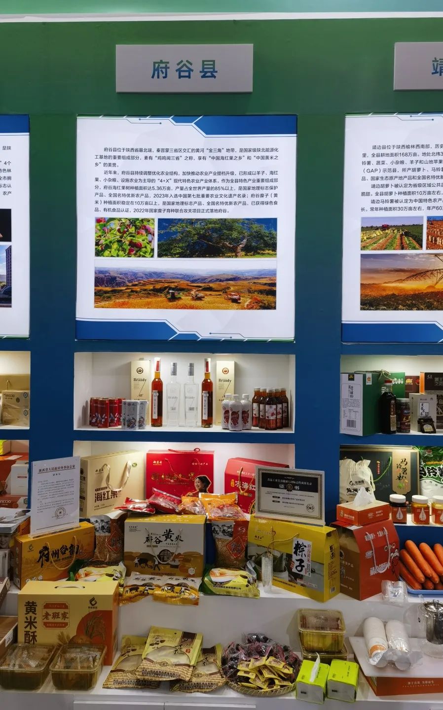 此次活动在河南省漯河市国际会展中心举办,采用展销会的形式开展,通过设置农产品展销摊位,力求拓宽农产品流通和销售渠道,促进农产品产销对接。农投公司积极参与,精心准备,本次参展的农特产品有海红果系列白兰地酒、海红果汁、果脯等海红果深加工产品,府州谷韵系列小米、黄米等优质小杂粮及杏仁、黄米酥、黄米粽子等优质农特产品。