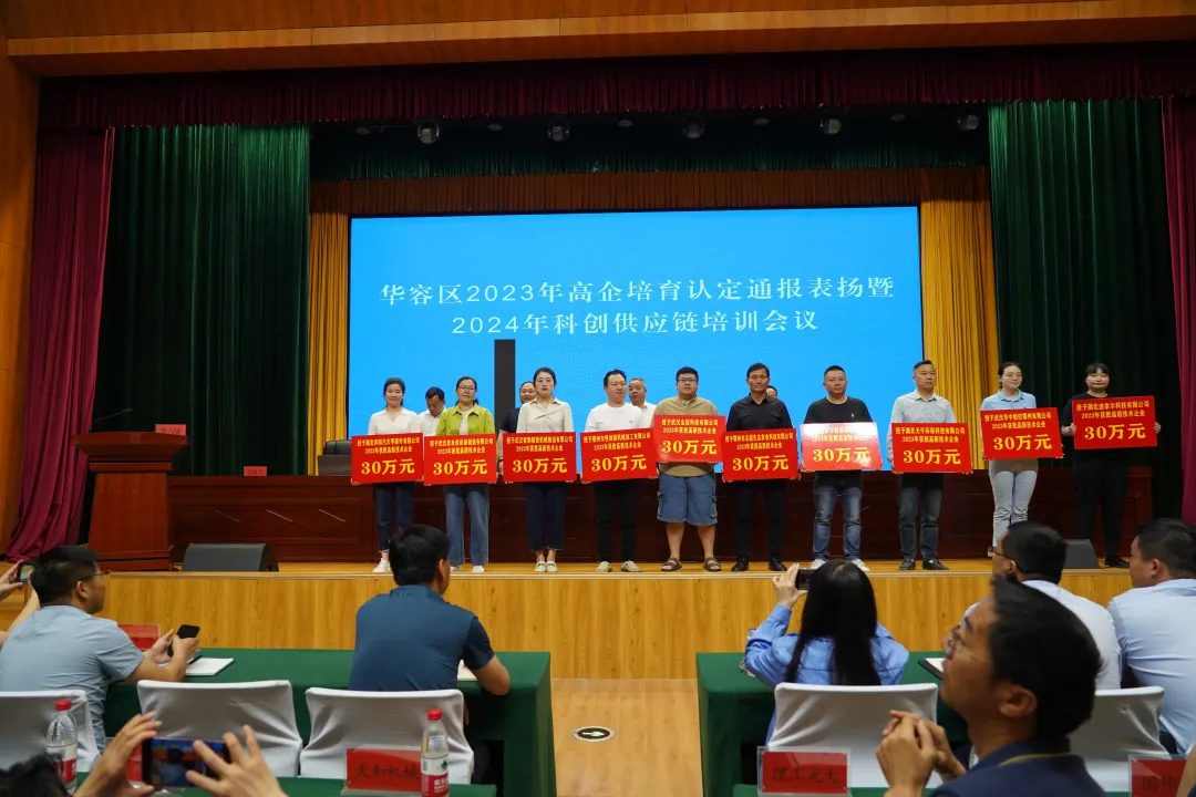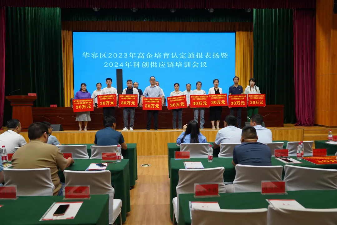 5月15日,华容区发改局在市民文化中心隆重举行2023年高企培育认定通报表扬暨2024年科创供应链培训会。2023年认定的20家高新技术企业受到表彰,每家企业获奖30万。会议上,市科技局副局长轩亮,区委常委、副区长廖小红为获奖企业发放高新技术企业认定证书和奖牌。廖小红宣布启动2024年高新技术企业申报工作。