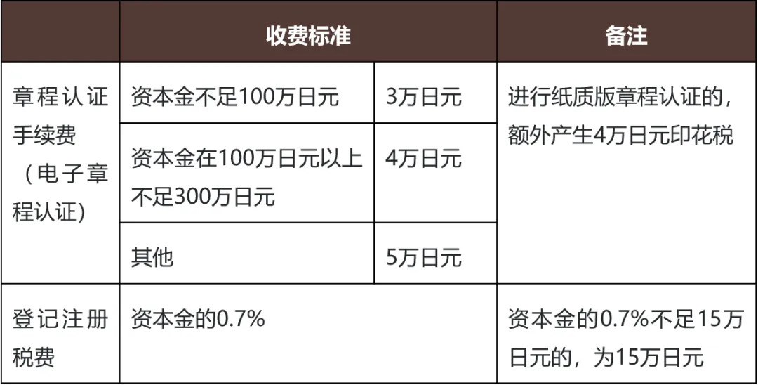 新设日本公司的周期、费用