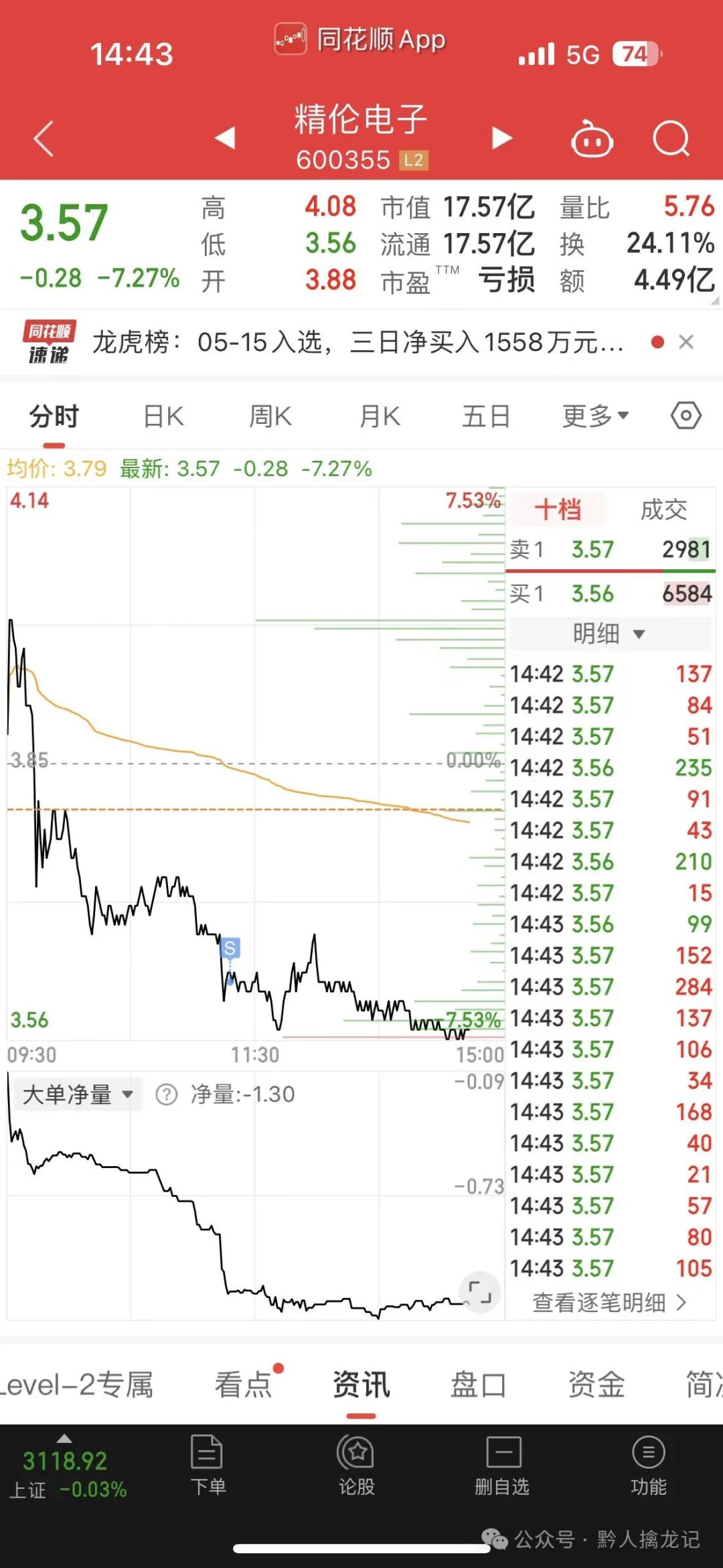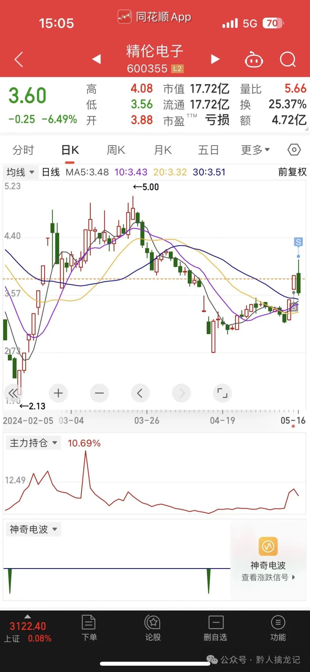 止损精伦电子,没开新仓
