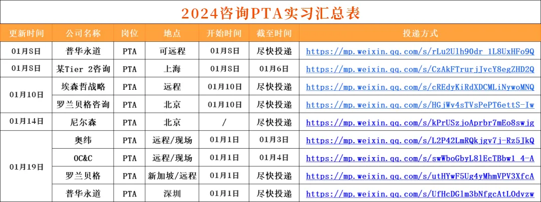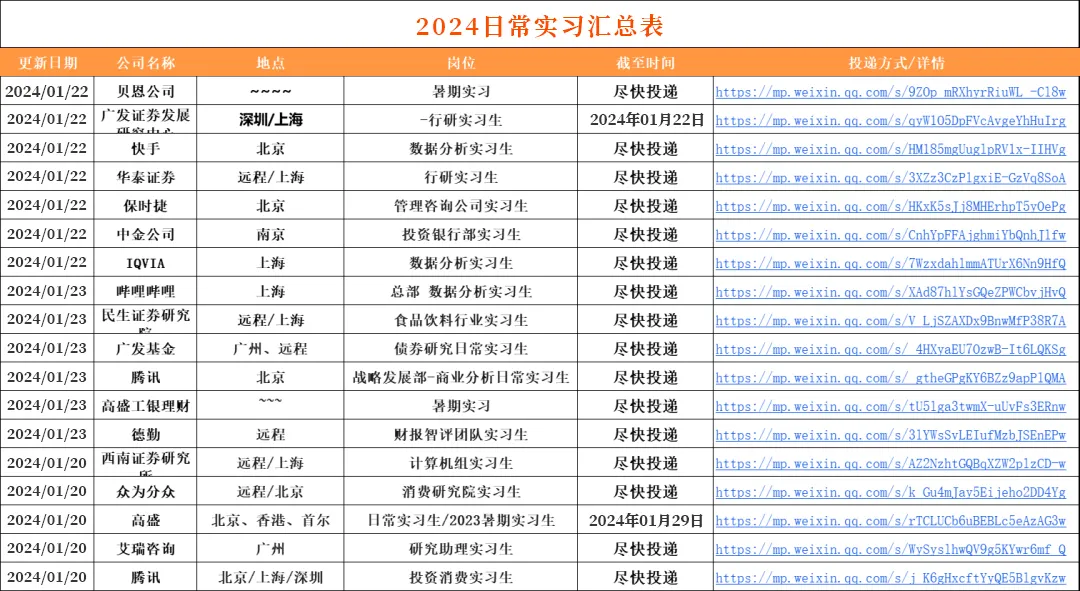 入群即得实习信息汇总表