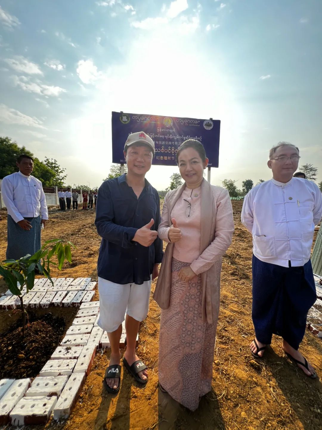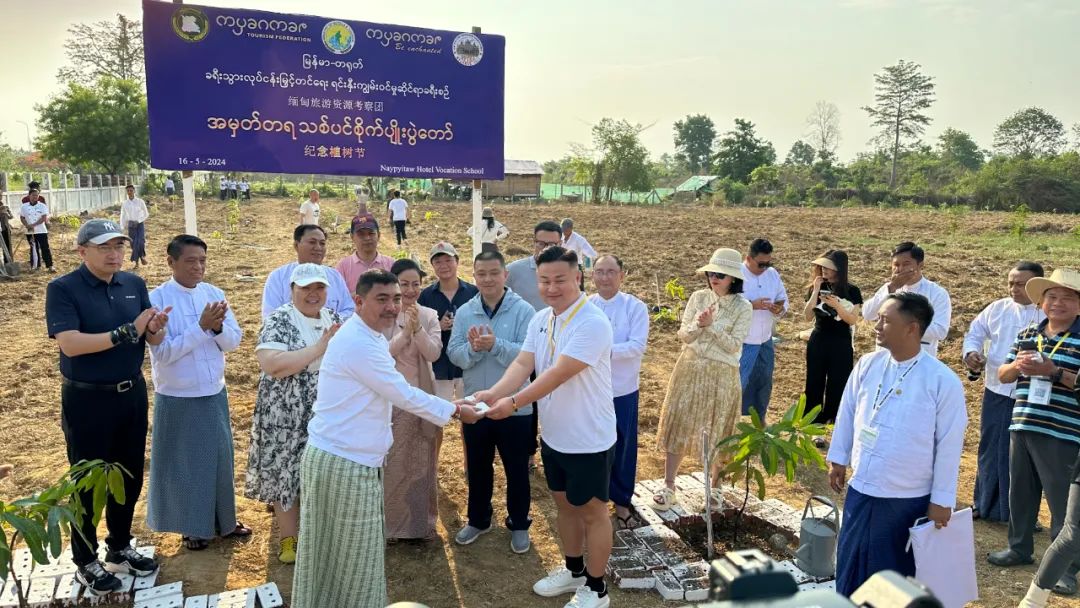 会谈后,代表团一行还参与了在内比都举行的植树活动,共同种下中缅友谊树林。缅甸旅游酒店部部长亲自参与了植树活动,进一步象征着两国间的友好合作关系。同时,在旅游酒店部长的见证下,缅中旅游资源考察团向缅方进行了慈善捐助,显示了双方在促进社会和文化交流方面的诚意和努力。