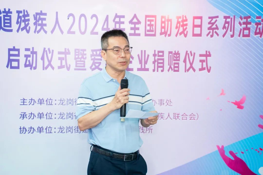 此次活动由龙岗街道党工委、龙岗街道办事处主办,龙岗街道公共服务办公室(残疾人联合会)承办,龙岗街道新时代文明实践所协办。龙岗区残疾人联合会一级调研员陈礼阳,龙岗街道党工委委员、妇联主席许雪梅,龙岗街道办事处副主任、工商联常务副主席房建伟出席了活动,街道商会秘书处以及爱心企业代表和残疾人代表等60余人参加了活动。