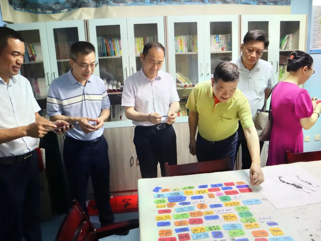 礼阳同志、雪梅委员、建伟同志一行欣赏艺术作品、观摩节奏鼓奥尔夫音乐特色课培训以及游园活动