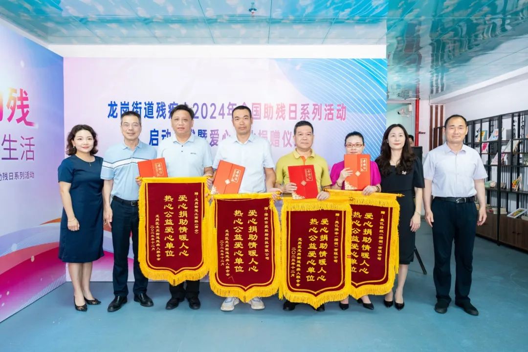 公益事业的发展离不开社会各界的慈善力量。有多家单位向深圳市龙岗区慈善会·扶残助残关爱基金提供捐赠支持,其中街道优秀企业、商会会员单位皇亿纺织(深圳)有限公司、兆亿洋伞(深圳)有限公司 、深圳市爱默斯科技有限公司等捐赠了一批价值48000元的会议触碰一体机、会议桌椅、按摩床等各式设备;龙岗街道工商联(商会)积极发动会员企业爱心,共捐赠了爱心善款约6.8万余元;希望能够帮助残疾人朋友更好地融入社会,共享美好生活。为此,活动还举办了爱心企业捐赠仪式,为爱心企业、单位等代表颁发荣誉牌匾及锦旗。